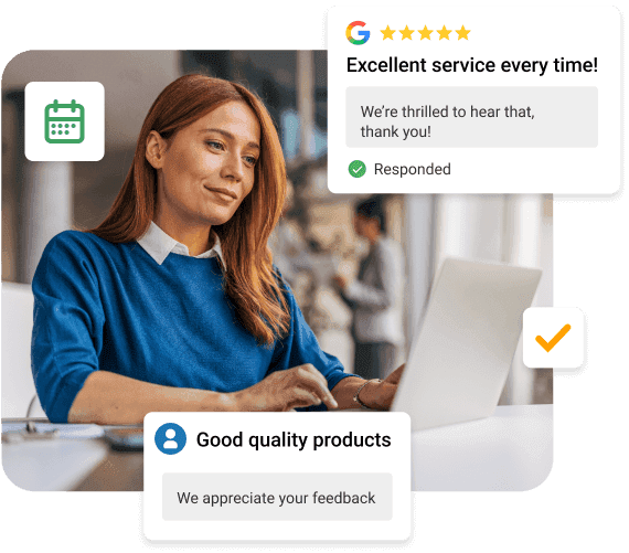 We’ll help build your online reputation by monitoring reviews, responding on your behalf, and encouraging customer feedback to boost trust and credibility.